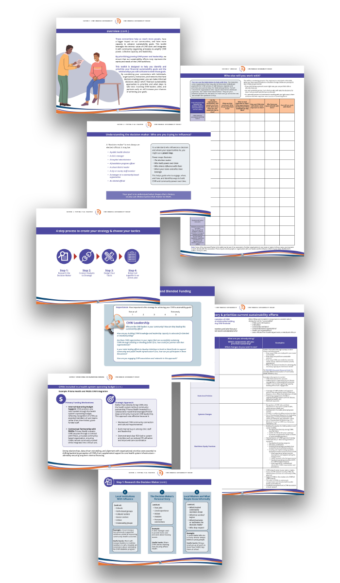 The CHW Financial Sustainability Planning Toolkit, created by envision in collaboration with national experts, is a comprehensive resource designed to help CHWs and CHW allies achieve financial sustainability.